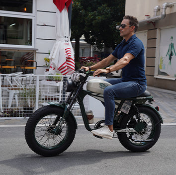 Best-selling moped style E-Bike equipped with 48V LG battery and 20×4 inches fat tires. Built with a robust and durable frame, is designed to longer range, better performance and stronger power.