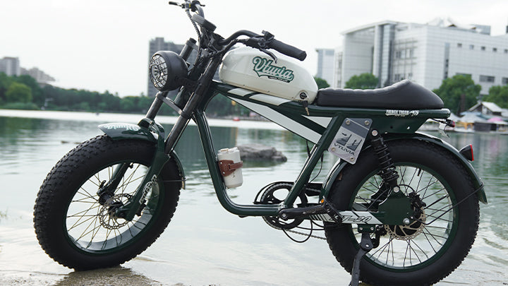 A great fat tire bike needs to handle tough terrains like it's nothing. To hit that goal the Tiger has an extra sturdy aluminum frame that's shaped to be as rigid as possible. The large headlight provides easy access to the battery. The bike is ready to handle all the gear you need and the bright LCD keeps you up to date rain or shine.