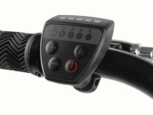 Handlebar-mounted, easy-read LED control panel indicates battery level and controls Pedal Assist and Walk Mode.