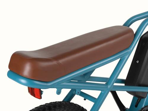 The elongated moto-style saddle is comfortable, spacious, and able to accommodate riders up to 350 lbs.