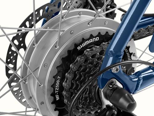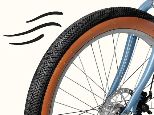 Extra wide and grippy 3” tires roll right over bumps for a smooth ride, with additional puncture protection that keeps the risk of flat tires to a minimum and a versatile Shimano 7-speed Mega-Range drivetrain that makes riding uphill or into headwinds a breeze.