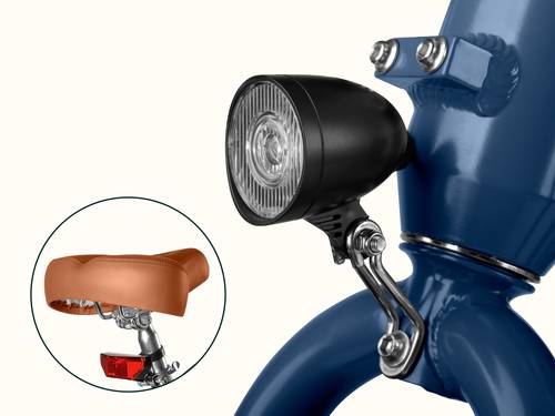 Don’t let the sun set on your adventures. This bike is equipped with an integrated headlight and battery-operated taillight so you won’t have to worry about getting back before dark.