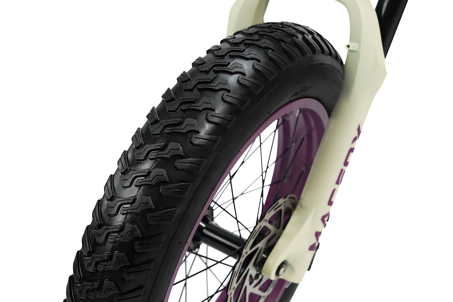 The thick and sturdy tires with knobby tread patterns provide strong grip and traction, even in harsh terrains such as dry land, mud, asphalt, and sand.